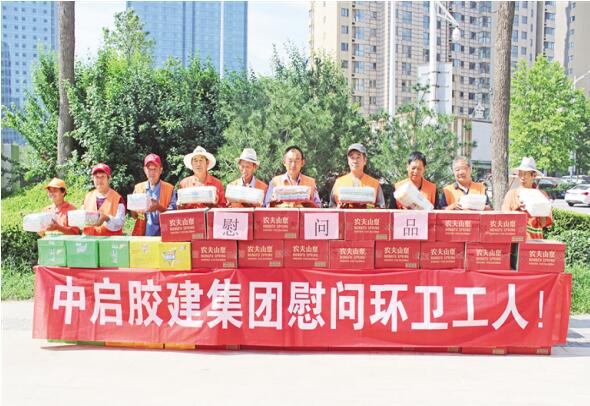 慰問現場,工作人員為環衛工人送去了毛巾和防暑用品,并對一線環衛工人的辛勤付出表示衷心感謝。環衛工人張建偉說:“十分感謝中啟膠建,這么熱的天來給我們送毛巾、防暑的東西,我們非常高興,真是太感謝了。”