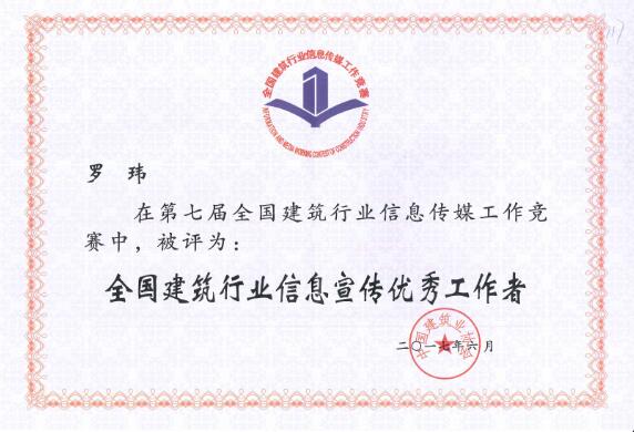 今年年初,集團參加了第七屆全國建筑行業信息傳媒工作競賽的角逐,經各相關部門人員的努力,集團網站、微信公眾號喜獲“全國建筑行業優秀網站”、“全國建筑行業優秀微信公眾號”的殊榮,劉博、羅瑋兩人獲得 “全國建筑行業信息宣傳優秀工作者”榮譽稱號。