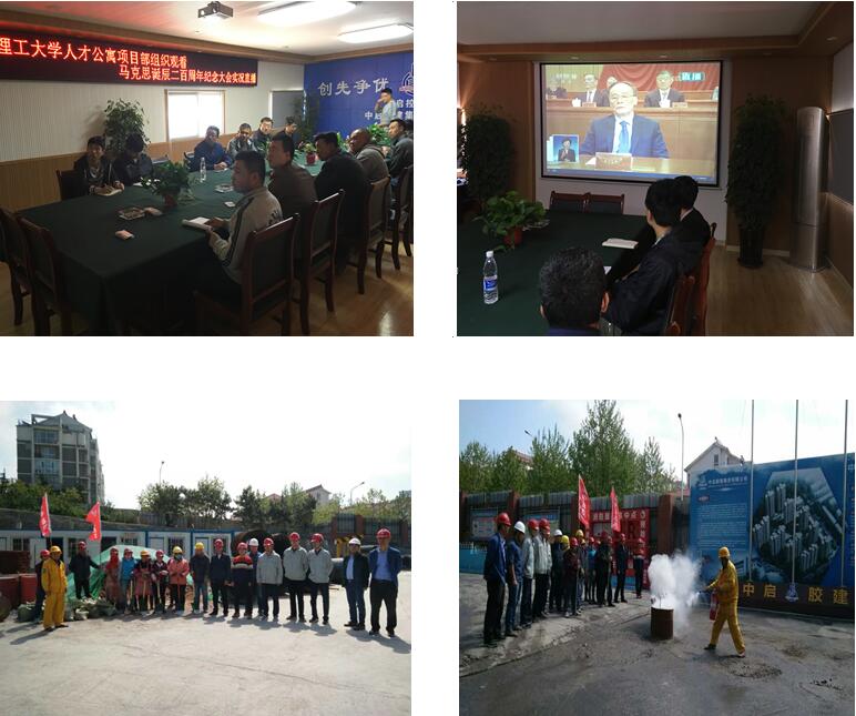 為增強項目班子的凝聚力、向心力、戰斗力,根據集團黨委統一要求,項目黨支部組織全體黨員及青島公共住房建設投資有限公司、青島理工大學建設工程監理咨詢公司、中啟膠建理工大學項目全體管理人員集中觀看了“馬克思誕辰200周年紀念大會”,認真聆聽了習近平總書記在紀念大會上的重要講話。