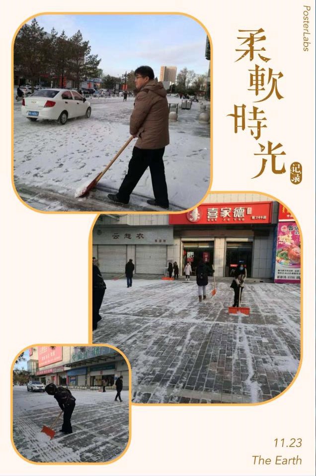 經(jīng)過(guò)不到一個(gè)小時(shí)的戰(zhàn)斗,積雪不知不覺(jué)的讓大家伙給清理干凈了,道路也漏出了它原來(lái)的樣子,好像也漏出了笑臉。雖然我們員工的衣服臟了,鞋子也濕了,但是為了咱們的顧客和員工,開(kāi)辟通暢的道路,我們每個(gè)人臉上都洋溢著笑容,好美的一幅畫(huà),真的很溫暖很欣慰。
