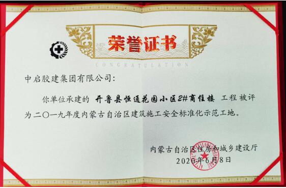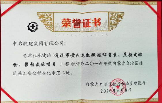 7月3日,內(nèi)蒙古通遼市住房和城鄉(xiāng)建設(shè)局傳來喜訊,建筑二公司施工的通遼市乳酸鏈球菌素、蔗糖發(fā)酵物、聚賴氨酸項(xiàng)目”和“開魯縣恒通花園小區(qū)2#商住樓獲得2019年度內(nèi)蒙古自治區(qū)建筑施工“安全標(biāo)準(zhǔn)化示范工地”榮譽(yù)稱號(hào)。