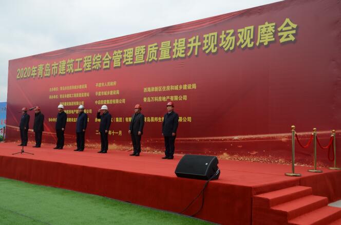 11月20日上午9:00,青島市住房和城鄉(xiāng)建設(shè)局組織的2020年青島市建筑工程綜合管理暨質(zhì)量提升現(xiàn)場觀摩會(huì)在中啟膠建集團(tuán)建筑七公司施工的易邦生物科技產(chǎn)業(yè)園項(xiàng)目現(xiàn)場勝利開幕。青島市住房和城鄉(xiāng)建設(shè)局副局長劉玉勇,青島高新區(qū)管委副主任、工委委員蒲洪強(qiáng),青島市建筑工程質(zhì)量監(jiān)督站副站長崔浩等出席了此次活動(dòng)。觀摩會(huì)為期兩天,截至11月20日下午5時(shí),青島市及各區(qū)市住房和城鄉(xiāng)建設(shè)主管部門、全市建筑工程質(zhì)量監(jiān)督機(jī)構(gòu)和建設(shè)、施工、監(jiān)理企業(yè)項(xiàng)目負(fù)責(zé)人、質(zhì)量技術(shù)負(fù)責(zé)人代表等760余人參加了此次觀摩會(huì)。