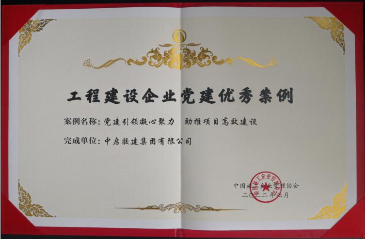 近日,中啟膠建集團有限公司黨建工作案例《黨建引領凝心聚力,助推項目高效建設》榮獲中國施工企業管理協會“工程建設企業黨建工作優秀案例”獎。