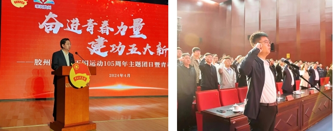 2024年是紀念五四運動105周年,也是新中國成立75周年。為傳承和弘揚“五四”精神,全面展現上合新區青年奮發進取的精神風貌,膠州團市委在膠州市市民文化中心二樓舉行“奮進青春力量,建功五大新城”膠州市紀念五四運動105周年主題團日暨青春故事宣講會活動,膠州市委副書記劉濤出席并發表致辭,團市委書記孫傳奇帶領全體團員、團干部重溫入團誓詞,會上對全市“五四典型”進行通報表揚。中啟膠建集團有限公司青島分公司團支部榮獲2023年度“膠州市五四紅旗團支部”稱號,中啟膠建集團膠州分公司團員青年職工王銘濤榮獲“青島市優秀共青團員”稱號,中啟控股集團股份有限公司團委書記袁曉文榮獲“膠州市優秀共青團干部”稱號。
