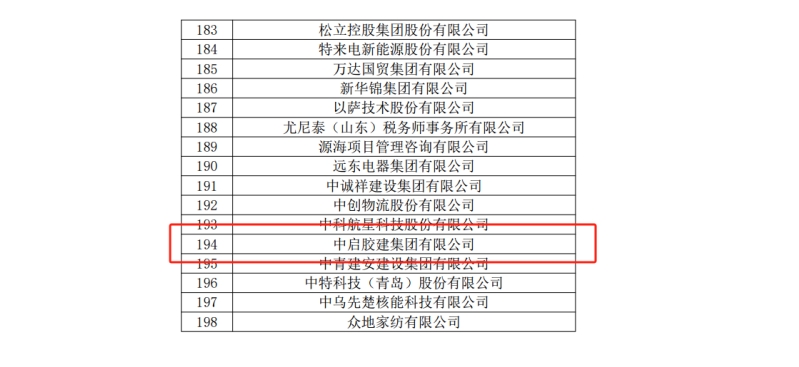 近日,青島市民營經濟發(fā)展局公布了“2024年度青島市民營領軍標桿企業(yè)”名單,中啟膠建集團連續(xù)兩年上榜。民營領軍標桿評選更重視企業(yè)的行業(yè)引領作用,從行業(yè)地位、經營規(guī)模、管理制度、創(chuàng)新發(fā)展等方面對企業(yè)進行綜合評價。入選2024年度青島市民營領軍標桿的企業(yè)有198家,來自農業(yè)、制造業(yè)、服務業(yè)、建筑業(yè)等各行業(yè),是領軍作用突出、行業(yè)優(yōu)勢明顯、核心競爭力強的民營龍頭企業(yè)。