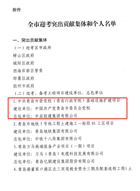 2024年8月,膠州公司的熙園府項目一期工程、七公司的中共青島市委黨校(青島行政學院)基礎設施擴建項目,代表山東省圓滿完成了國務院保障農民工工資支付工作實地考核任務。