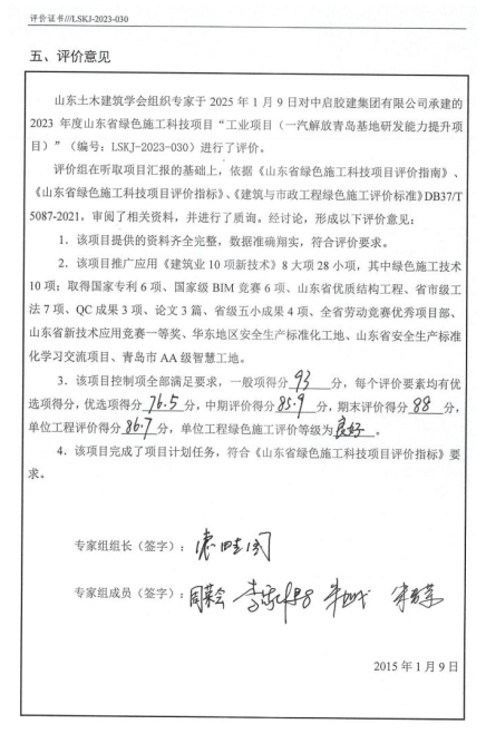 山東省綠色施工科技項(xiàng)目評(píng)價(jià),是由山東土木建筑學(xué)會(huì)組織開(kāi)展,旨在貫徹落實(shí)國(guó)家綠色發(fā)展理念,提高工程建設(shè)綠色施工水平,推進(jìn)全生命周期綠色建造,推動(dòng)實(shí)現(xiàn)碳達(dá)峰、碳中和,從而促進(jìn)工程建設(shè)行業(yè)高質(zhì)量發(fā)展。通過(guò)專家評(píng)審,該項(xiàng)目單位工程評(píng)價(jià)取得86.7分的優(yōu)異成績(jī),單位工程綠色施工評(píng)價(jià)等級(jí)為良好。