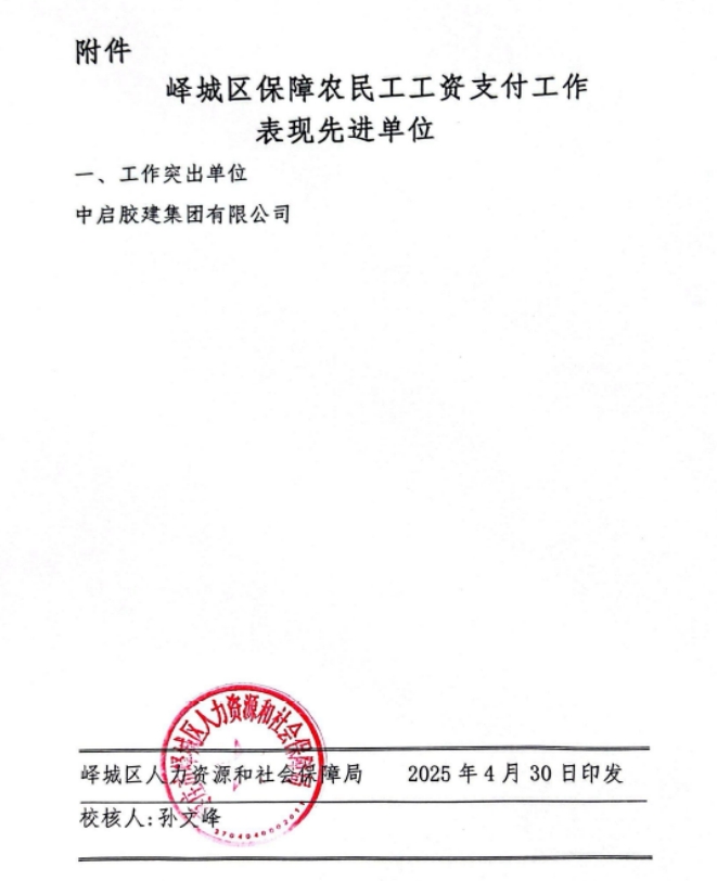近年來,公司高度重視保障農民工工資支付工作落實成效,先后多次迎接國務院及省市各級考核檢查,積極推動企業欠薪治理工作提質增效,取得了各級主管部門的高度認可與大力贊揚。