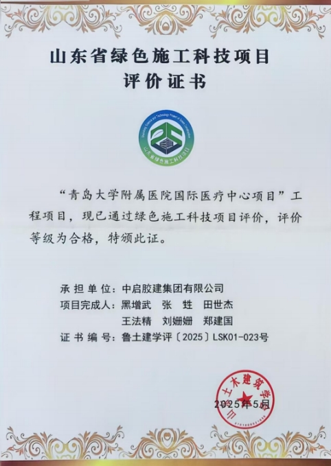 近日,由中啟膠建集團建筑七公司負責承建的青島大學附屬醫院國際醫療中心項目順利通過山東省綠色施工科技項目評價驗收。