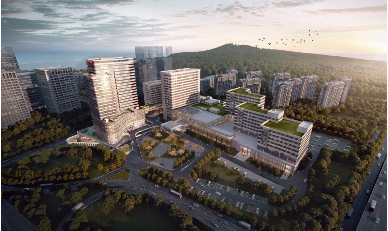 青島大學附屬醫院國際醫療中心,位于青島市嶗山區海爾路59號,工程總用地面積為14.19萬㎡,總建筑面積為6.63萬㎡ ,其中地上建筑面積53215㎡,地下建筑面積13085 ㎡。地下3 層,地上23層,建筑高度98.55米。工程主樓為框架剪力墻結構,裙房為框架結構,結構樁基礎。項目位于院區東側,西側緊鄰門診病房綜合樓、綜合病房樓及門診醫技樓,東側緊鄰院區污水處理站,北側與擬建的院區中心廣場智能車庫毗鄰,建設用地范圍約5000 平方米。國際醫療中心規劃床位286張。主要功能為國際門診、醫技、體檢中心、預防保健、病房等。該項目于2021年立項山東省綠色施工科技項目,經過三年的建設,順利完成了各項綠色施工目標達到較好的科技示范效果。
