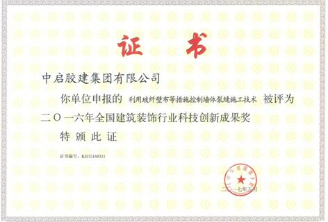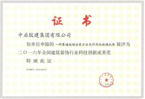 日前,2016年度全國科技創新成果、示范工程獎評選結果揭曉,我公司施工的濱州市科技中心(一館三中心)Ⅰ段榮獲2016年全國建筑裝飾行業科技示范工程獎,《廚衛間整體裝飾施工技術》、《利用玻纖壁布等措施控制墻體裂縫施工技術》、《一種幕墻玻璃安裝方法及所用的玻璃托架》三項新技術被評為2016年全國建筑裝飾行業科技創新成果獎。